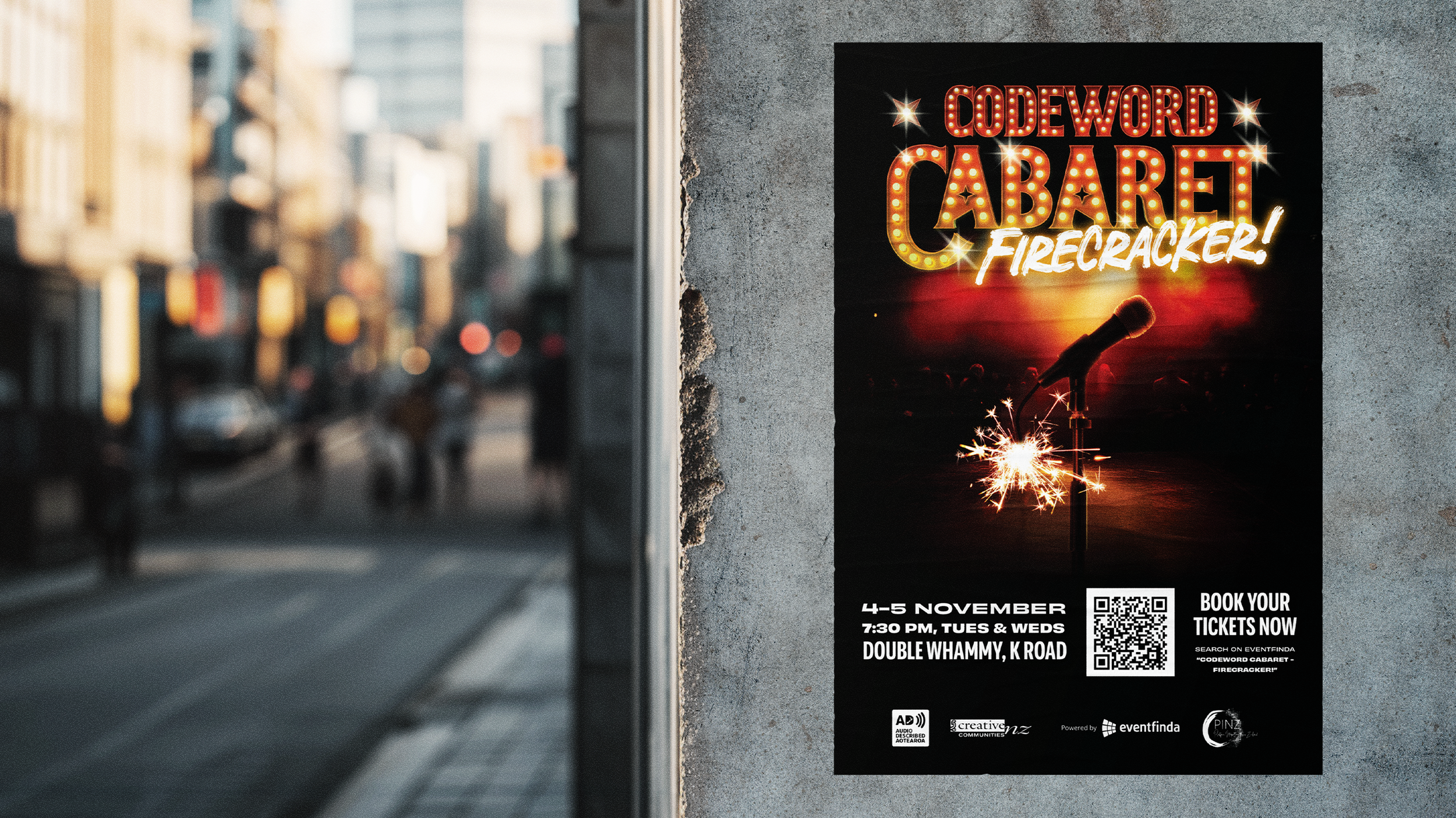 Developing a visual identity for Codeword: Cabaret, an Auckland-based variety show celebrating fresh, local talent. The brand captures the show’s ever-changing nature, each performance reveals a secret lineup of comedy, drag, burlesque, and more. creating a playful, eclectic visual world that mirrors its spontaneous and theatrical spirit.